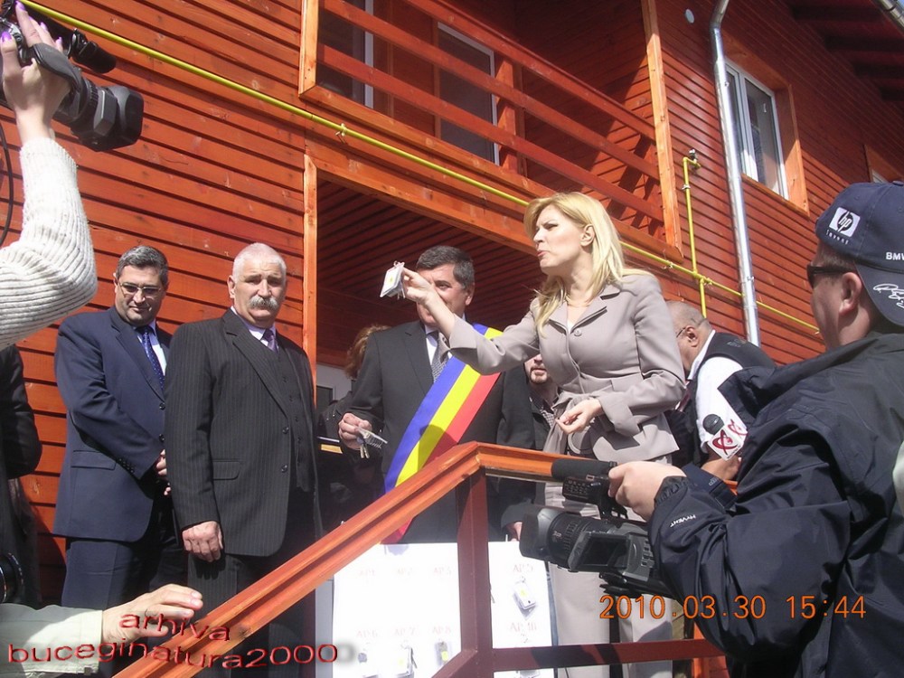 Astfel ca, la Busteni s-a deplasat personal d-na ministru Elena Udrea insotita de secretarul de stat, bustenarul George Nastasia! In fata multimii adunate si a consilierilor locali a rostit o alocutiune potrivita acestui eveniment, smulgand aplauze indelungi din partea asistentei.