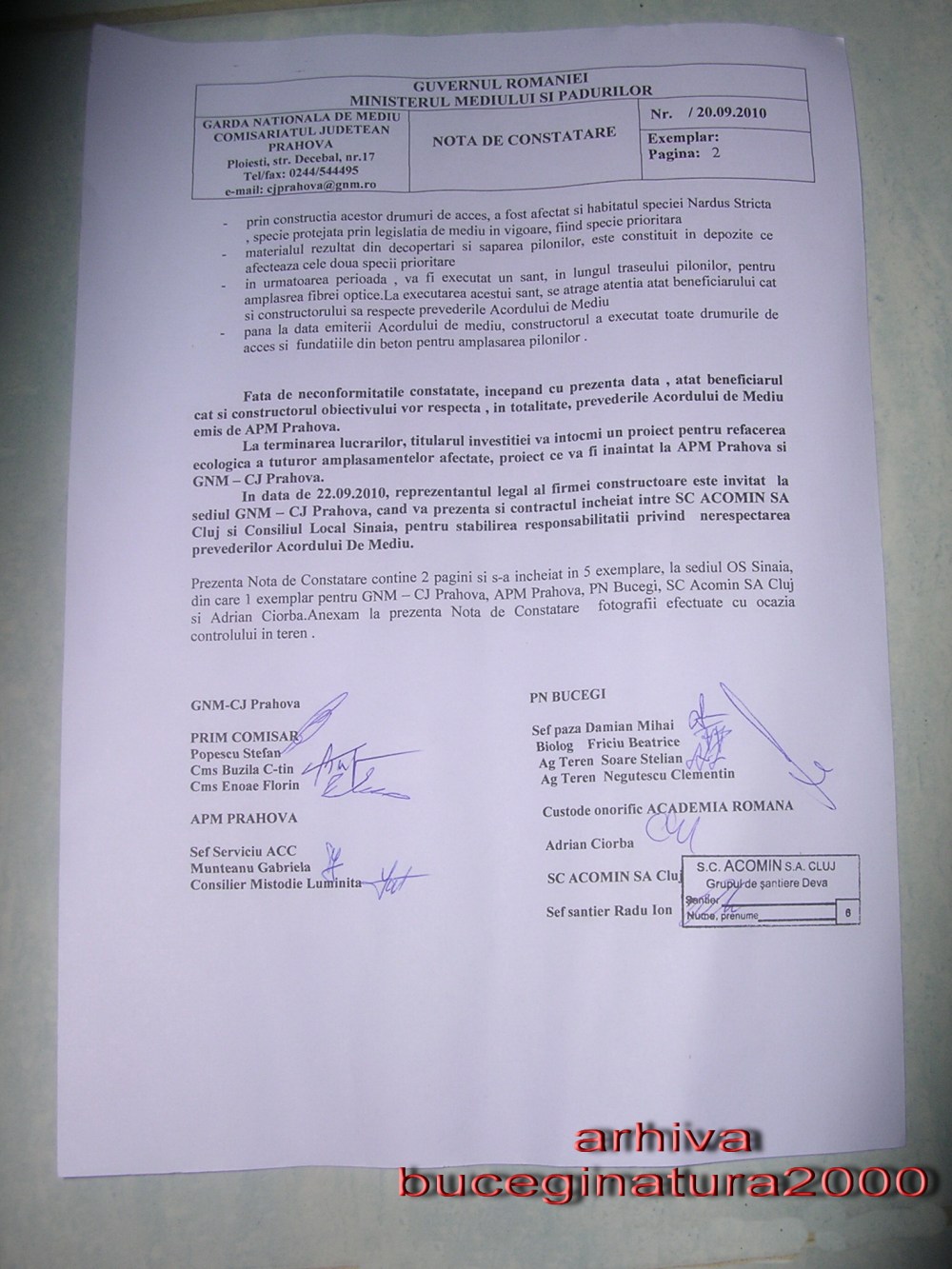 – prin realizarea acelor drumuri de acces a fost afectat si habitatul speciei protejate Nardus Stricta. (PROBLEMA ESTE CA ACESTE SPECII PRIORITARE EXISTAU SI AR FI FOST AFECTATE ORICUM DE LUCRARI, DAR NU S-A DORIT CA ACESTEA SA APARA IN ACTE. DESI AUTORII STUDIULUI DE BIODIVERSITATE AU SPUS INITIAL CA EXISTA ACESTE SPECII, AU REVENIT ULTERIOR CU PRECIZARI CA ACESTEA NU AR MAI EXISTA).