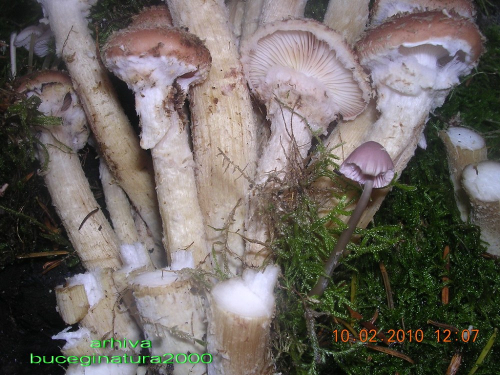Observati un manunchi de ghebe. Ciupercile au fost taiate, circa 3-4 bucati. La o privire mai atenta se observa langa manunchiul de ghebe o ciuperca mica, dar otravitoare. Este in partea dreapta a fotografiei. Aceasta daca se taia tot manunchiul dintr-odata nu ar fi fost observata.