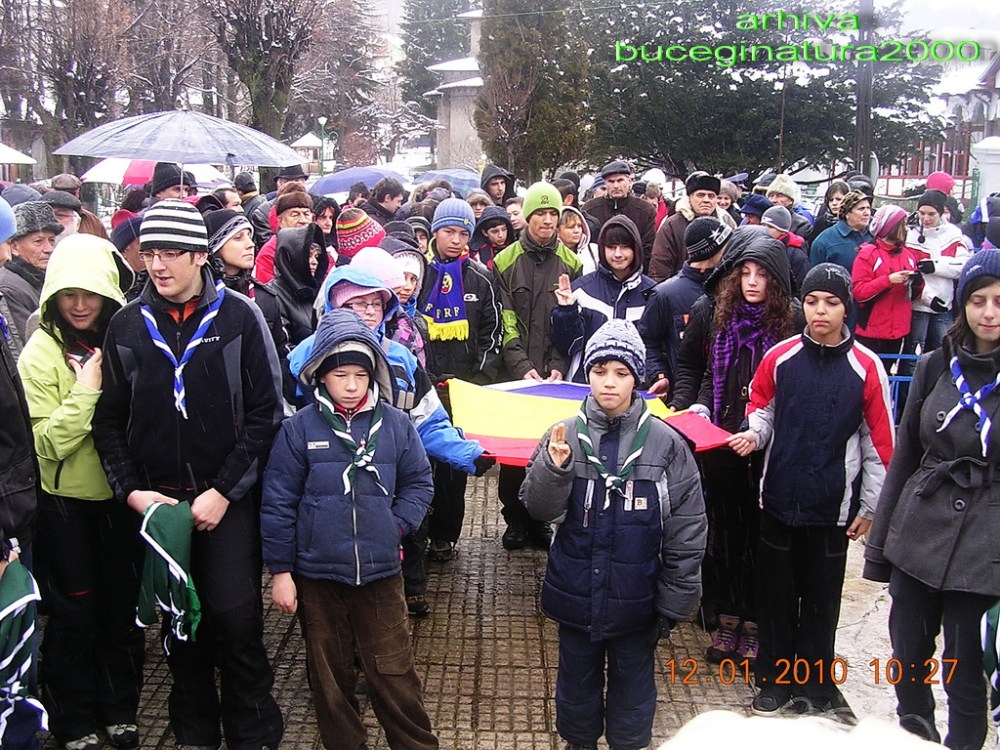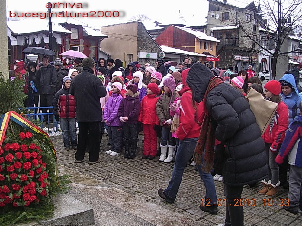 S-a pornit din fata Primariei, spre Monumentul „Ultima grenada” care-l reprezinta pe eroul Constantin Musat, locul unde se depuneau coroanele si se oficia o mica slujba religioasa. In frunte fanfara…vremea insa a fost potrivnica, ca de altfel in toata Valea Prahovei.