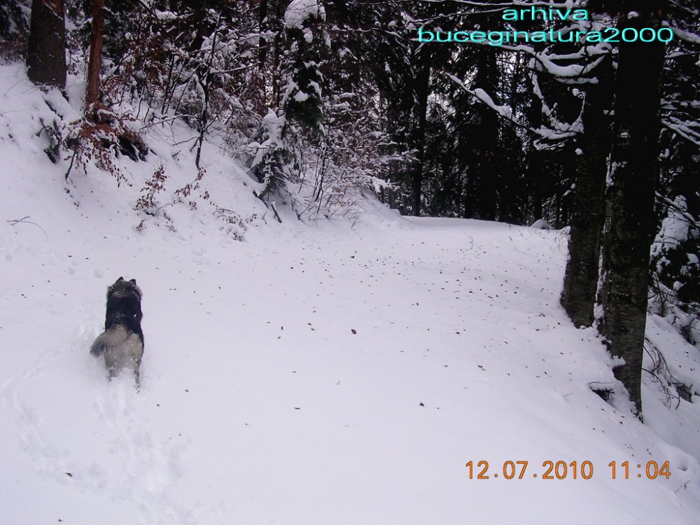 Cainele ce era cu noi are un ciudat obicei sa-si ingroape capul in zapada.