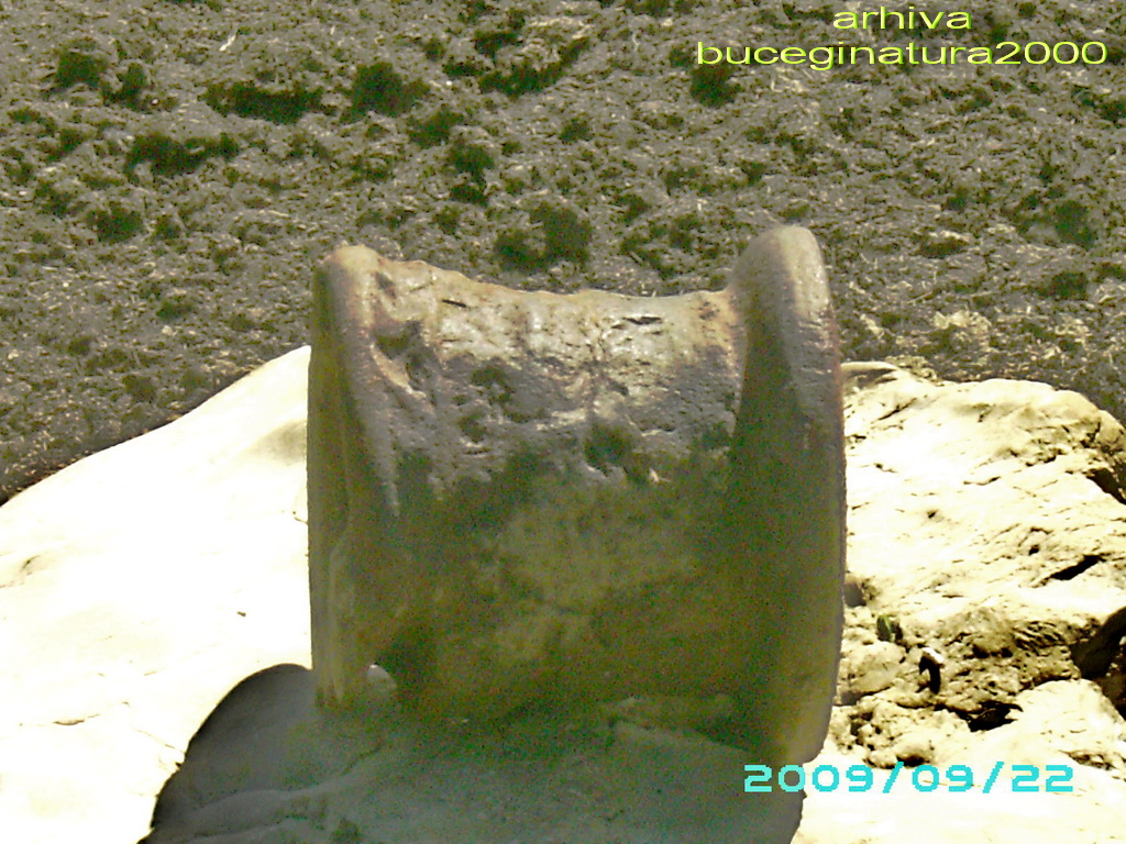 Din poza pare a fi o piesa de la un car, lagarul care era montat in interiorul butucului rotii din lemn. Ca o fi dacic sau nu, ramane ca specialistii sa-si dea cu parerea. Poate a ramas de la carele cu boi care au urcat piesele crucii de pe Caraiman.
