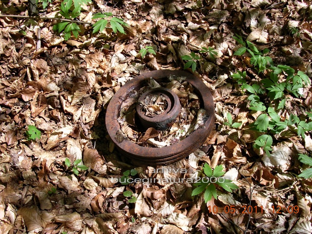 O ciudatenie feroasa, (pare o roata dar axul ar fi prea mic) intr-un loc unde nimeni nu arunca gunoaie, etc. De la ce este sau ce este pe viitor…cand mai trec pe acolo :) Sunt foarte circumspect cu astfel de fieratanii, de cand pe la 17 ani i-am dat un sut unei grenade defensive si aia de prin jur, oameni in toata firea nu mai stiau unde sa se ascunda :))) Norocul a fost ca mai era doar invelisul…acum nu stiu cine a avut noroc mai mult :)