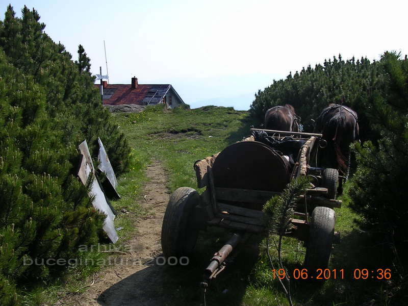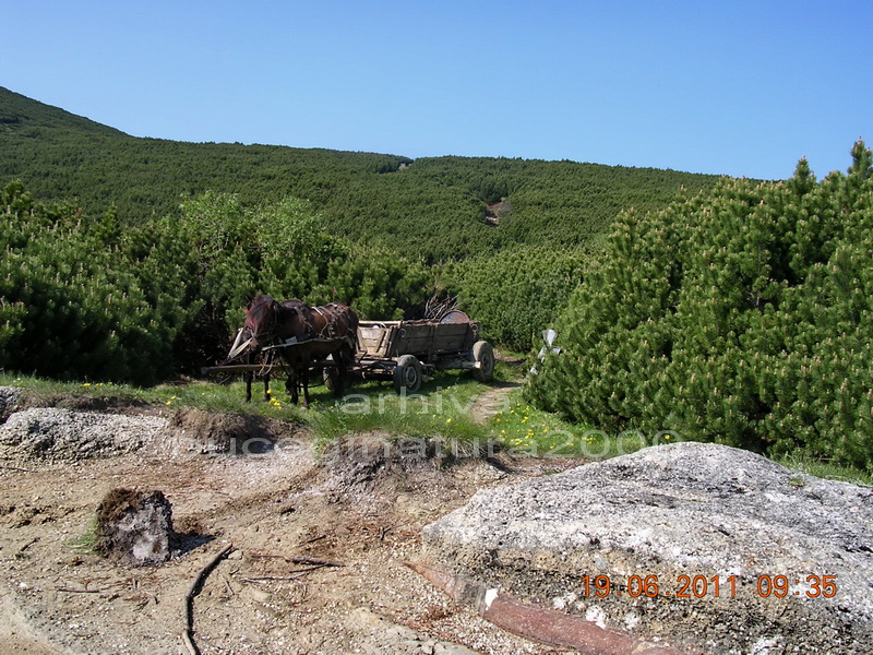 Exact cum banuiam s-a si intamplat. Duminica am urcat pe Jepii Mari. In spatele cantonului Jepi, cam la 20 metri era o caruta cu doi cai, mirosul de cal se simtea de pe terasa cantonului. Am stat si m-am uitat ce face manatorul caravanei…se strecura atent printre jnepeni dupa ce anterior supraveghease traseele turistice. A vazut ca nu e nimeni a si inceput sa traga de o teava, sa bata in ea, sa vorbeasca singur, injurand pe aia care au implantat teava in beton :)) bietul de el.