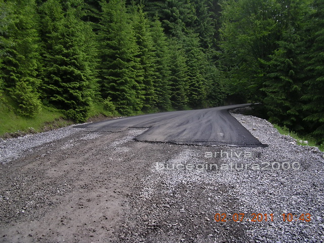 Abia dupa cca 3 km de la cabana apare asfaltul…l-au turnat din varful muntelui in jos :)