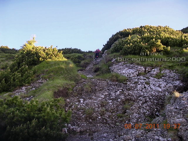 Timpii realizati par foarte buni dar nu e deloc asa. Cand i-am spus ca am depasit cu 35 de minute limita normala pentru acest traseu i s-a parut extraordinar :) Cand i-am propus sa mergem fara sa alergam ca sa nu ne consumam energia i s-a parut de neacceptat, doar eram in primele cinci echipe dupa timpii de parcurgere. Numai ca noi nu eram la un concurs de viteza, cine alearga mai bine, ci la o chestie de rezistenta, mult peste limitele normale. Fixasem niste timpi de parcurgere impreuna cu antrenor cunoscut, astfel incat sa poti termina concursul, noi insa eram cu mult sub acei timpi. Urma urcusul pe Piciorul Pietrei Arse, unde a inceput sa dea primele semne de oboseala, am coborat Jepii Mari in aproximativ o ora iar dupa 6 ore si 30 minute eram inapoi la tabara de la Pestera, urmand sa urcam spre Vf. Omu.