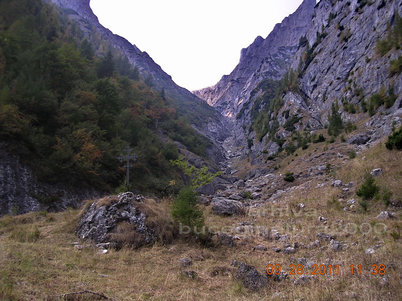 Am urcat pe triunghi rosu, marcaj ce duce din Busteni prin Poiana Costilei, Pichetul Rosu, Prepeleag, pana la cabana Malaiesti, doar pana la o intersectie, unde am urmat o poteca spre stanga. Mult mai sus apare si pe aceasta un marcaj, aproape sters, triunghi galben.