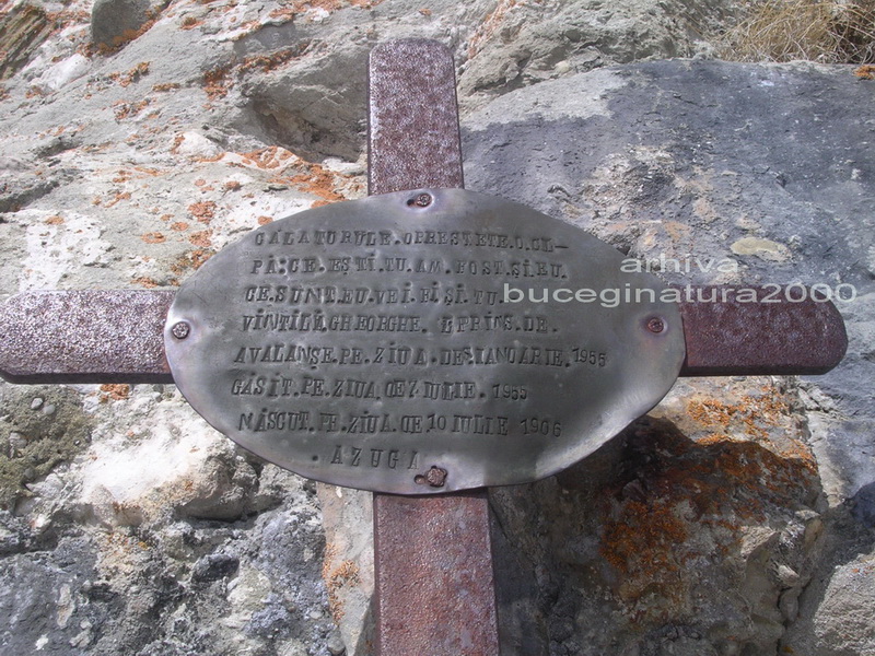 Crucea unui decedat, nascut in 1906 si surprins de o avalansa in ianuarie 1955. L-au gasit abia in luna iulie acelasi an…pe munte accidentele au loc in special in lunile de iarna. De copil vedeam crucea asta si nu puteam ajunge la ea, mereu vroiam sa urc dar era cineva cu mine care nu ma lasa :) Oricum pe anumite cruci sunt scrise multe vorbe aiurea, care le dau fiori turistilor…iar aceasta cruce are o poveste lunga.