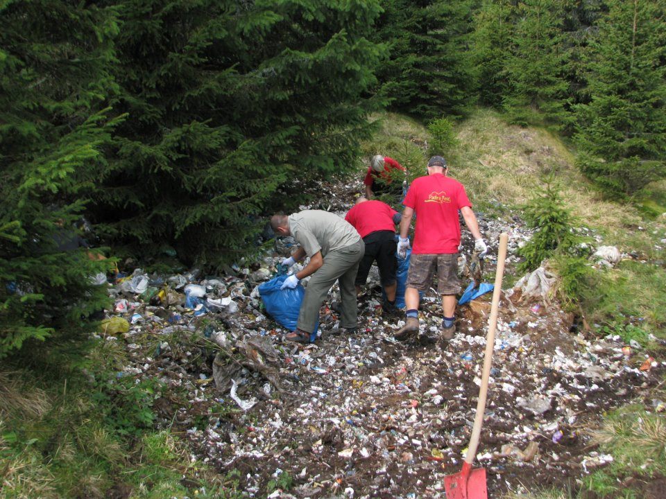 Care era problema? In preajma cabanei de vanatoare a Directiei Silvice Targoviste se aflau doua gropi imense de gunoi. De altfel in Bucegi aceasta directie nu s-a facut remarcata decat prin realizarea gropilor ilegale de gunoi, existente in preajma locatiilor sale…de vanatoare. Cei care ar trebui sa vegheze sa nu se aduca in niciun fel atingere padurilor tocmai ei sunt cei mai mari poluatori.