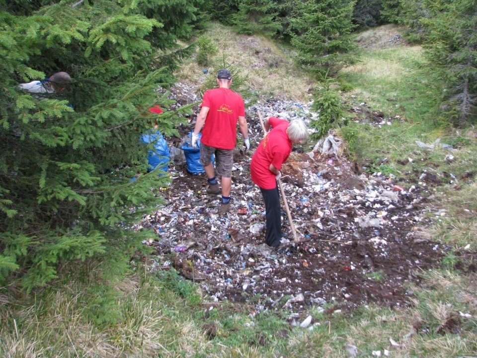 Si in ziua de 24.09.2011, ziua cand s-a dat startul in campania Let’s do it Romania, ultima groapa de la Laptici a fost luata cu asalt de catre voluntarii inscrisi in campanie. Acestia ce reprezinta destinele mediului in Bucegi nu sunt altceva decat oameni lipsiti de scrupule. Doi-trei angajati de la Administratia Parcului si niciun silvicultor, in rest doar voluntari, au muncit de s-au spetit carand zeci si zeci de saci cu gunoaie…cand doar reprezentantii ministerului trebuiau sa lucreze, ei fiind autorii si co-autorii formarii acelor gropi uriase de gunoi. Nimeni in afara de cei de la acea cabana de vanatoare nu a dus gunoaie pe acolo…doar ei!