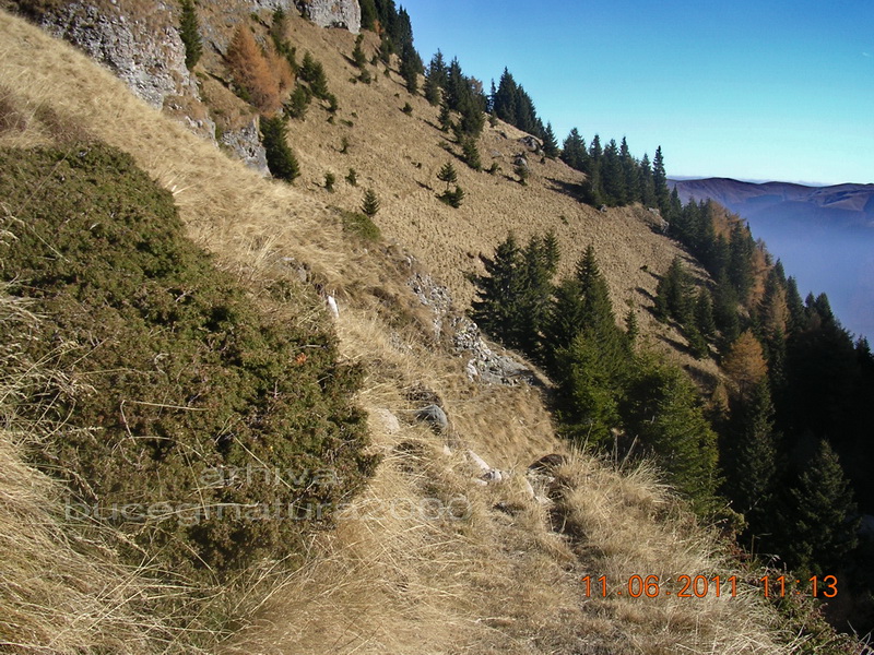 Poteca pe care am venit, nu foarte vizibila, din padurea aceea am iesit :) Marcajul este realizat foarte bine prin padure, in cateva poienite un turist neexperimentat il poate pierde…recomand celor cu astfel de probleme sa se orienteze dupa arborii cu crengile taiate cu drujba, este cel mai bun reper