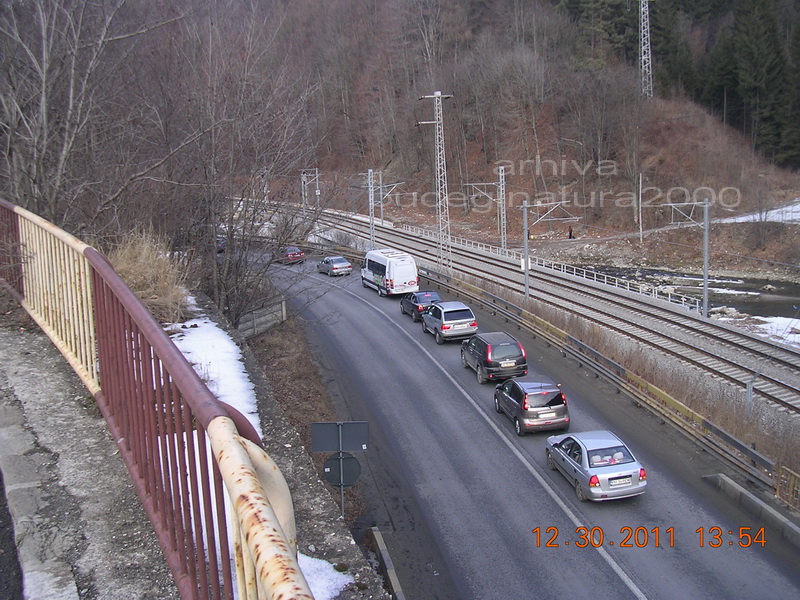 Coloana de masini se intindea pana la gara din Sinaia, foto…si pana prin centrul Busteniului, cam 7 km