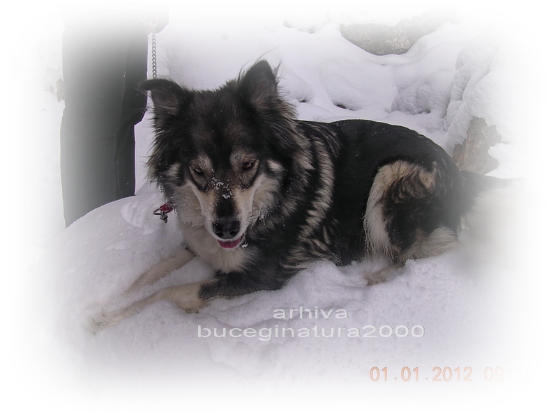 Ce harnic esti! 1 ianuarie si tu vioi blogaresti si colinzi muntele. Foarte frumoase primele fotografii din 2012 si din nou ma mir cat de harnic esti sa le si descarci rapid din aparatul foto si sa le si postezi. Ai inceput anul activ, in mare viteza :) .Catelul am crezut la prima vedere ca e lup , e simpatic , probabil s-a bucurat si el ca gaseste un insotitor.