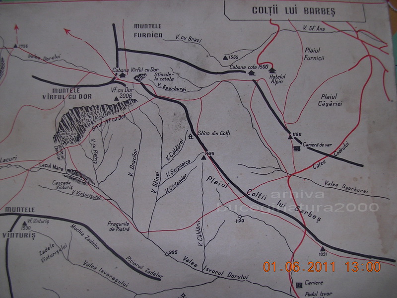 Una din primele harti cu Coltii lui Barbes si Vf. cu Dor