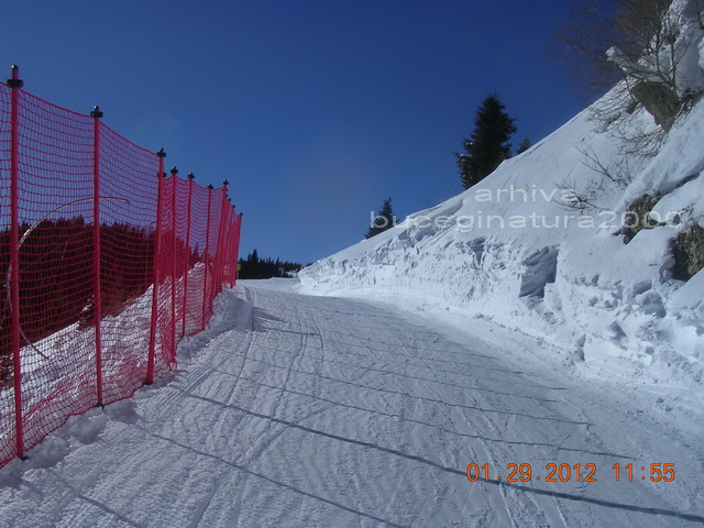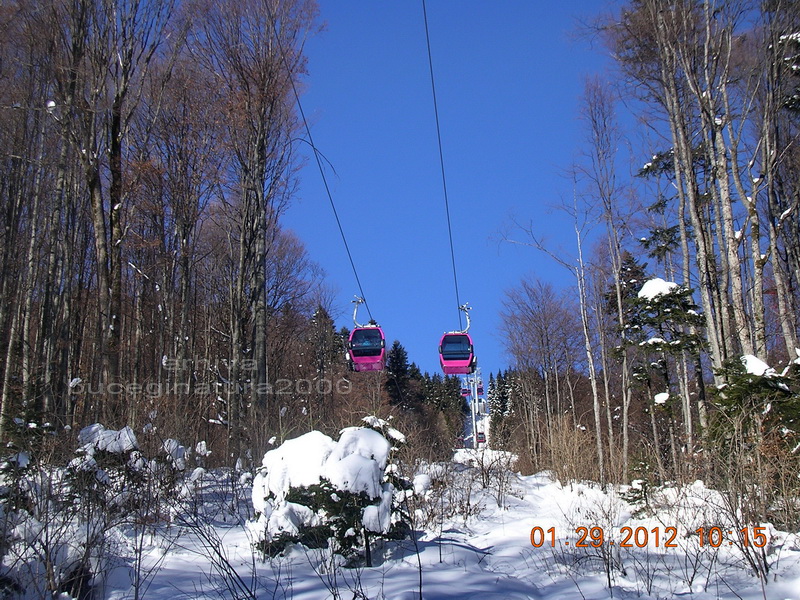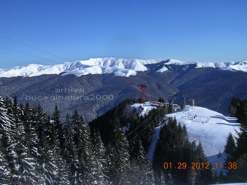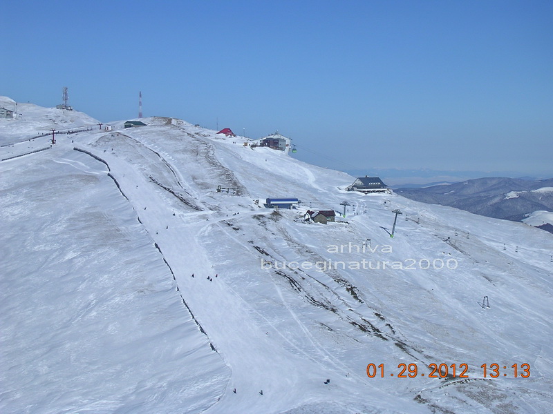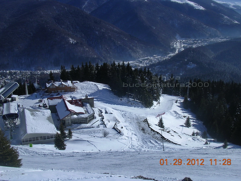 Aici se vede mai bine restaurantul Telefericului, vizavi de cabana lui Samoila. Intre cele doua locatii este Partia Noua, in stare foarte buna, inzapezita si artificial…se ajunge pe aceasta pana la statia de jos a telegondolei