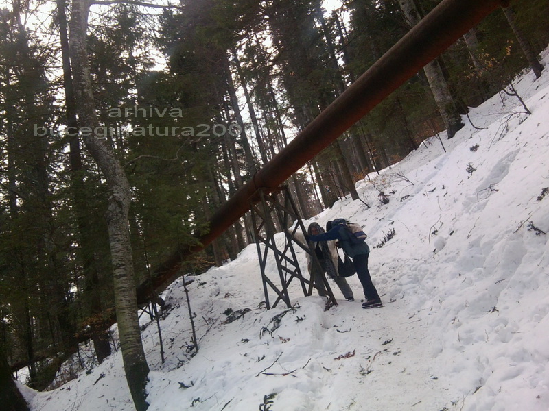 La intoarcere am coborat in Busteni…poteca este inghetata, multe persoane urcau, aproape de iesirea din padure era o clasa de elevi…printre ei atat turisti cat si cadre didactice, bravo lor ca fac miscare si nu stau acasa.