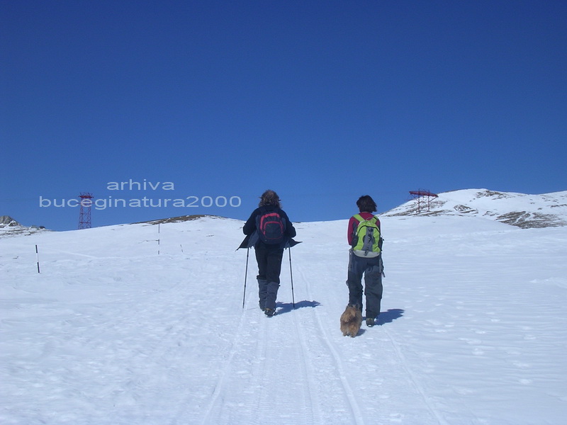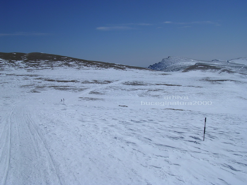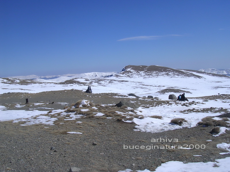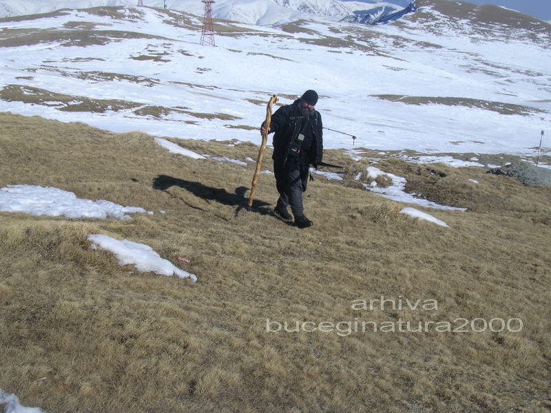 Sâmbătă 17.03.2012 pe Platoul Bucegilor. Am ajuns din urma un domn in varsta insotit de o tanara cu un catelus. In poza de mai jos i-am si depasit…probabil s-au dus pana la Sfinx pentru ca i-am vazut peste circa o ora intorcandu-se pe acelasi traseu pe care venisera.