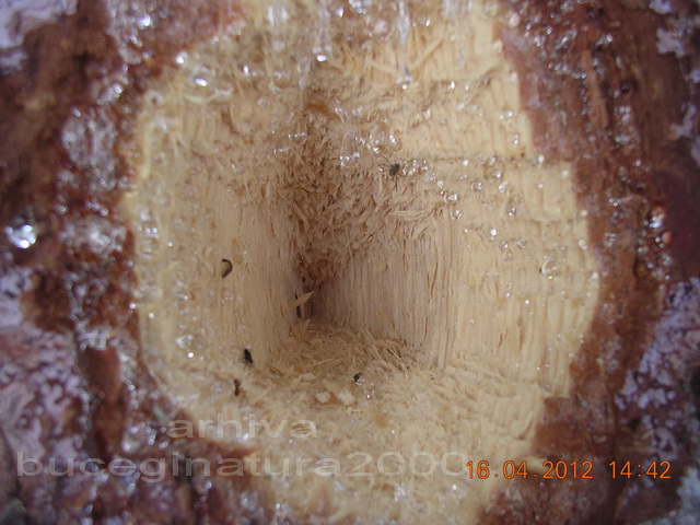 M-am „lipit” de imaginea copacului găurit de ciocănitori; e prima dată când văd cum arată întâmplată o căutare desfăşurătoare, nu am avut până acum „privilegiul” întâlnirii vreuneia.