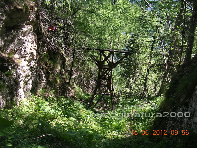 Si am ajuns la un stalp de funicular…ridicat in urma cu mai bine de 100 ani. Ati vazut pe unde am urcat. Va vine sa credeti ca pe acolo in urma cu un secol, oamenii urcau tragand dupa ei fiarele din imagine, ciment, pietris, apa, sa ridice acest stalp?