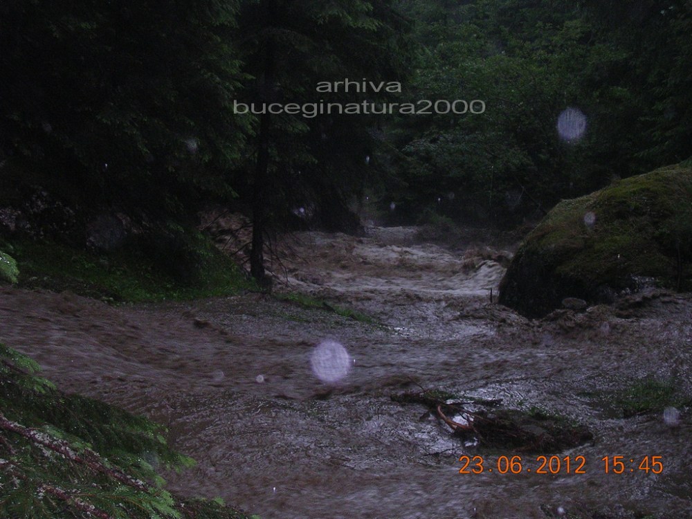salut, sunt unul dintre acei tineri din grupul care si-au instalat corturile in acea poienita din valea gaura cand a venit potopul. din fericire toti suntem teferi si-am ales intelept sa ne oprim acolo, imagineaza-ti ca eram la un sfert de ora de paraul care s-a transformat in viitura si doar o decizie ad hoc ne-a determinat sa ne oprim si sa campam. duminica dimineata doi dintre noi am pornit spre omu si-am vazut ce-a lasat in urma viitura pe care ai fotografiat-o.