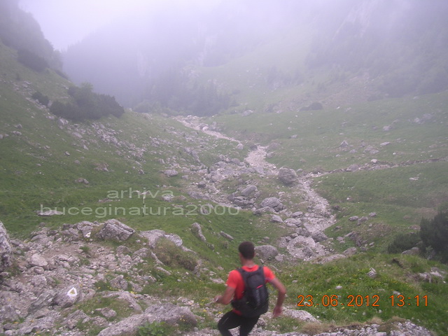1. Am fost norocosi :) Daca reuseam sa trecem apa am fi ramas la stana, mai sus nu urcam. Erau si trasnetele care ne-ar fi prins si viitura care venea din caldarea superioara a Vaii Gaura. Pacat de acel tanar, daca era pe Valea Bucsoiului pe acolo nu era traseu turistic. Chiar in acea zi am trecut acea vale, din poiana m-am uitat si am vazut zapada groasa de cel putin 2 metri in sus. Cred ca viitura a topit-o, luat-o, asta in cazul in care pe acolo s-a intamplat accidentul.