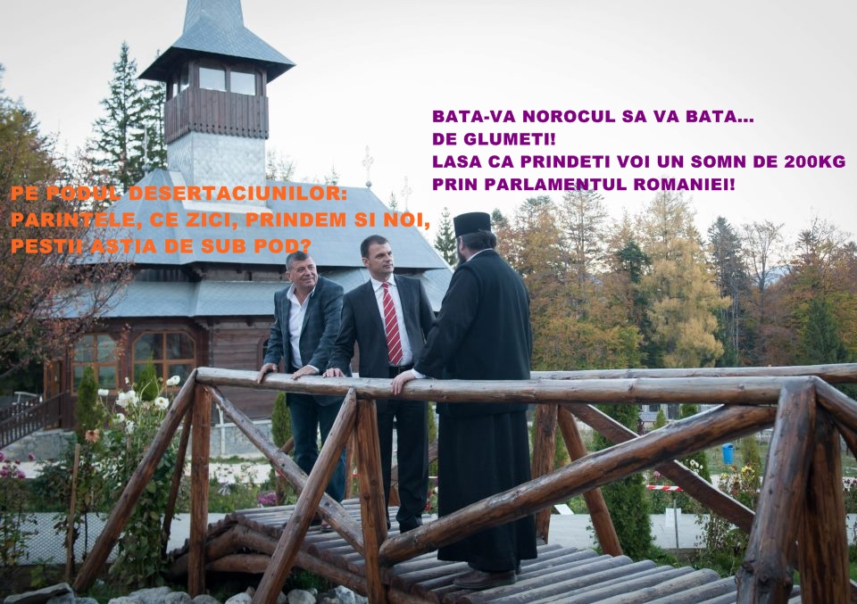 Adrian :) Nu ma pot implica in Pamfletul tau, nu cunosc personajele participante, doar partial pe Savin, din auzite si din prisma celor traite, „patimite” de pe urma lui de niste prieteni ai mei. Pregatesc si eu un post cu Manastirea Caraiman, unde mi s-a parut incredibil sa arunci bani pestilor…. Se spune doar, banii sunt cei mai mari purtatori de microbi…. si ii arunci unor pesti… ma mir cum de mai traiesc, ca doar nu sunt un soi imun la microbi…. cu zici tu, pe podul „desertaciunilor” am fost si eu, am facut poze, mi se pare incredibil…. Desi Manastirea Caraiman a pornit cu un tel nobil, astazi este… nici nu stiu ce sa spun….. grandoarea de acolo cred ca se poate compara doar cu Patriarhia de la Bucuresti….