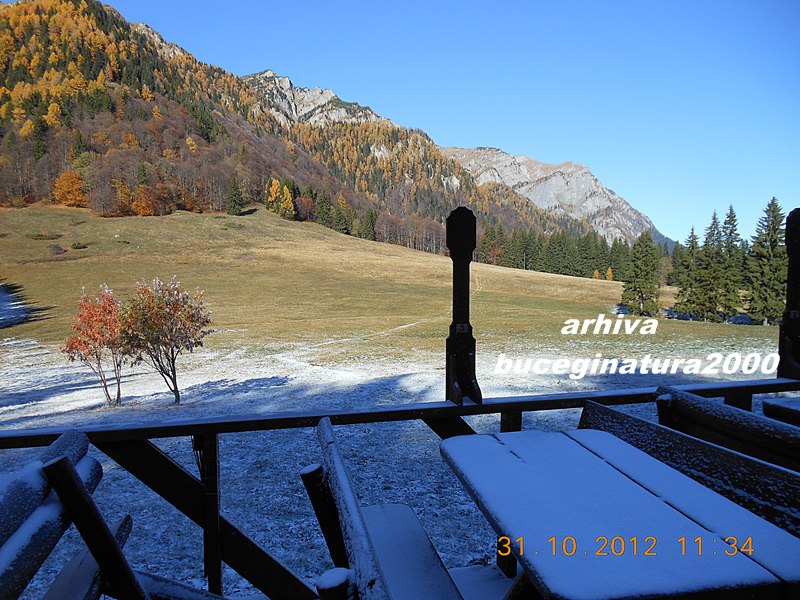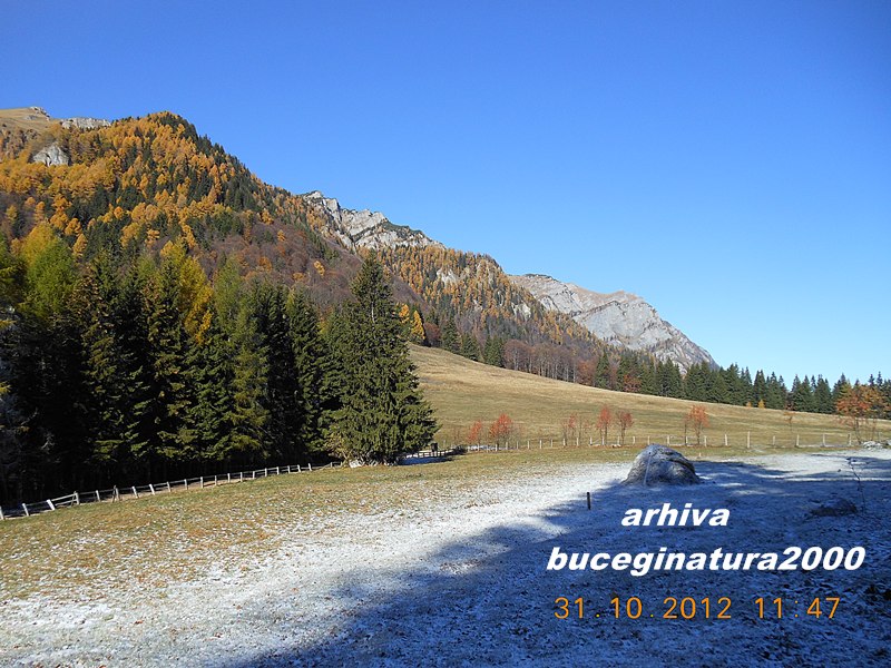 Ies eu dimineata pe la 7 din casa, (vedeti ca data de pe poze arata 8, nu am dat ceasul inapoi), ma asteptam sa fie foarte frig dar nu era asa. Muntele stralucea in bataia soarelui, strat de zapada peste frunze…pe masura ce soarele inainta se topea si zapada.