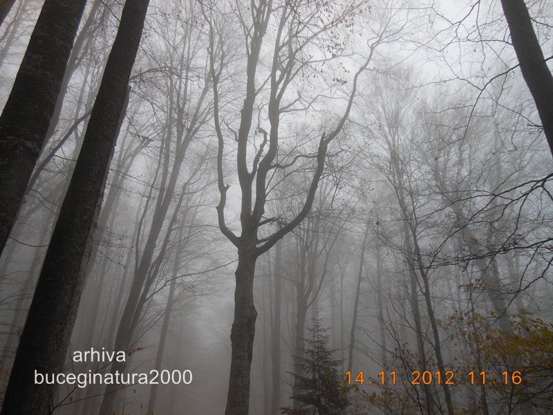 Mai departe venea o vale…dinspre aceasta razbateau pasi…vreun animal mergea. Mai repede il auzeam noi de pe acest platou impadurit decat el pe noi. Prin ceata asta deasa nu am vazut ce era…