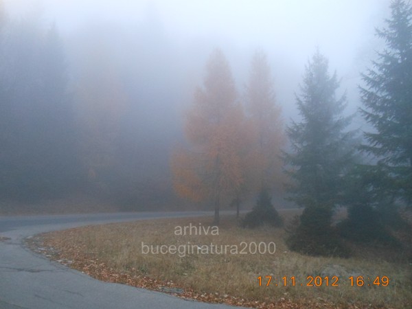 Pe Drumul Cotei…de la Cota 1400 si pana la sensul giratoriu de la Calea Codrului, adica in cartierul Furnica, ajung mai repede decat o masina…evident eu pe traseul turistic ;) Aici este pe la 1200 m altitudine si tot ceata este…deci plafonul are o grosime de circa 200 m.