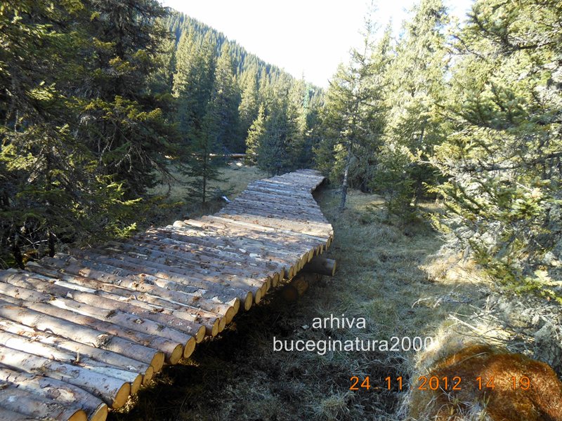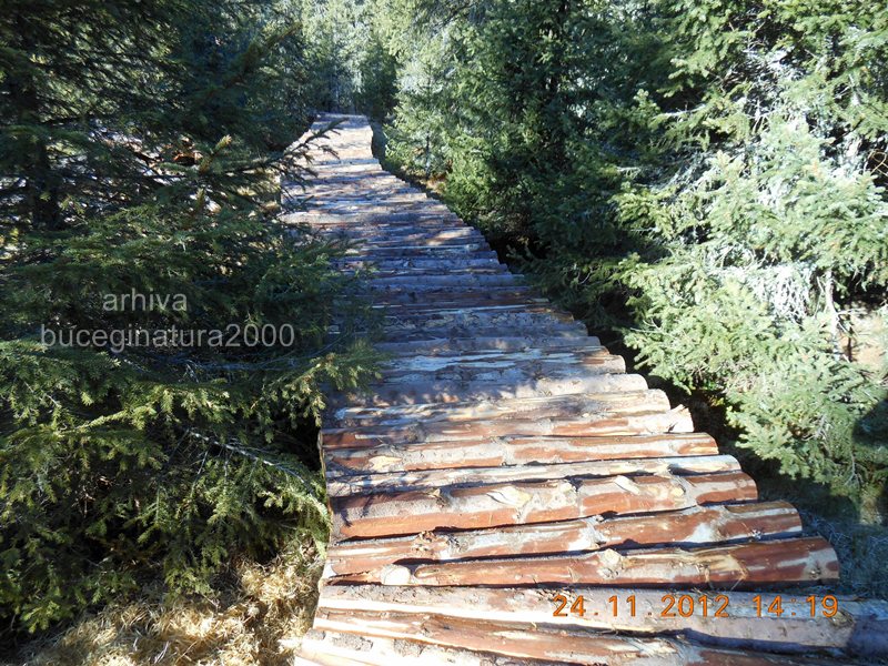 Frumoasa amenajarea pt. protejarea Turbariei.Dupa zeci de ani de cand o stiu, pot sa-ti confirm expansiunea lenta a molidisului,dar fiind un proces natural nu cred ca ar trebui intervenit.Alta explicatie pt. asfaltarea acelui drum decat eventuala Statiune Nucet ,nu prea pare sa existe. Zona aceea ramanad cumva in afara traseelor turistice tindea sa revina la starea naturala dinaintea amenajarilor hidro;acum pt. a-si face loc pt. viitoarele amenajari va fi supusa grav degradarii!