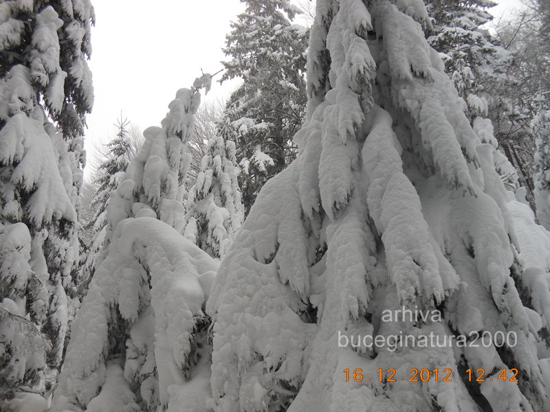Si mie mi-a atras atentia acest lucru, copacii nu au zapada in preajma cabanei. Sa vezi de ce, adica asa cred eu :) Pe acel drum, aflat acum sub zapada, deschiderea este mare si vantul suflu constant si zapada sta prinsa de crengi. Stii ca vantul mareste senzatie de frig, rece, favorizeaza inghetul… Zona unde se afla cabana este ferita de vant, in spatele cabanei este un mic varf impadurit. Apoi mai este si caldura degajata de constructia uriasa, ca este chiar mare cabana…Fiind ferita zona de vant, sub efectul razelor de soare zapada cade mai repede de pe crengi. De multe ori, in preajma cabanei este si plafon noros la o altitudine mica…ceea ce permite caldurii (fumului) sa se propage spre padurea din apropiere, plafonul fiind ca o bariera si ca un fel de conductor :)