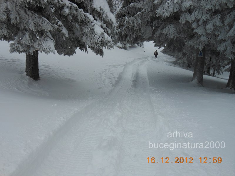 Dupa cum se vede, pentru cunoscatorii acestui munte, drumul auto nu exista, este sub zapada. Singura urma este a unui Atv cu senile