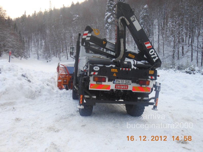 Il admiram si dintr-o parte :) Superb! Numai ca „mandretea” se odihnea in parcarea de la cabana Gura Diham. Cand am urcat noi nu era acolo. Nr de inmatriculare este elocvent: „SIA” de la NASTASIA. Nu este greu deloc. Ce utilaj are si nu l-am vazut deloc pe strazile Busteniului…cine stie unde il tine. Poate deszapezeste doar drumul lui din muntii Baiului.