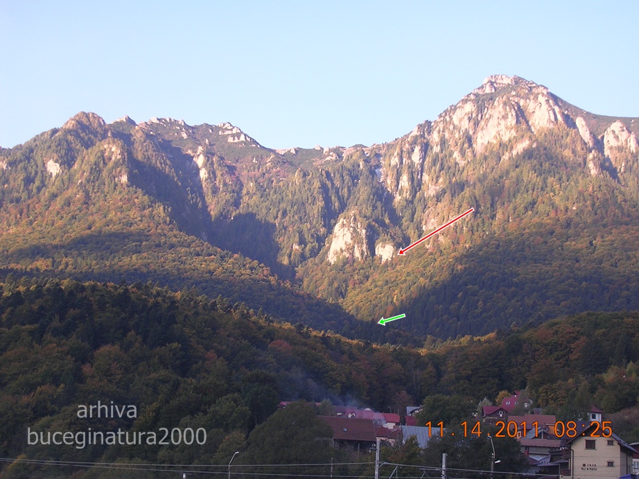 Captarea Valea Babei I este indicata de sageata rosie. Captarea Valea Babii II este in zona indicata de sageata verde