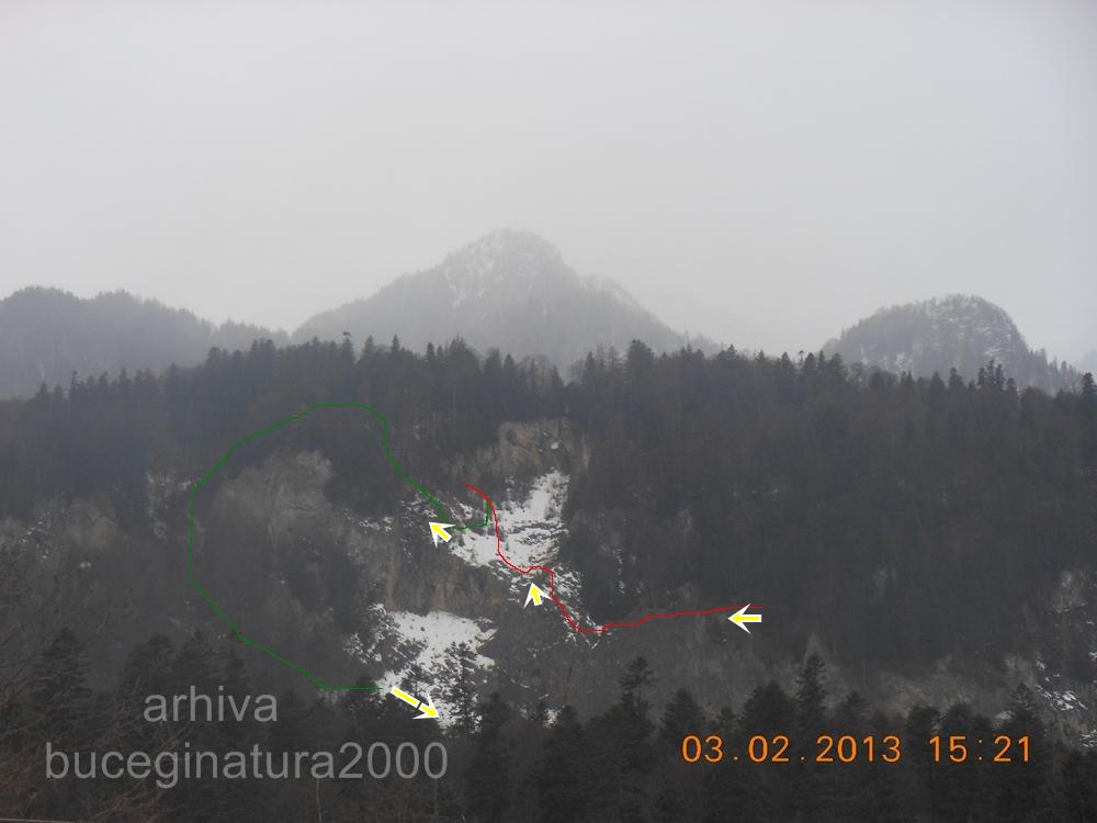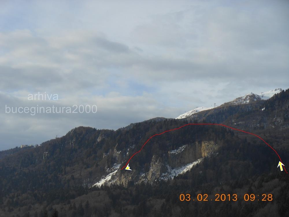 Am fost ieri pe acolo, sub amenințarea furtunii care se apropia, și am umblat mai bine de vreo oră din poteca PG înspre abruptul estic. Cred că am fost foarte aproape de peșteră, dar nu am găsit-o.