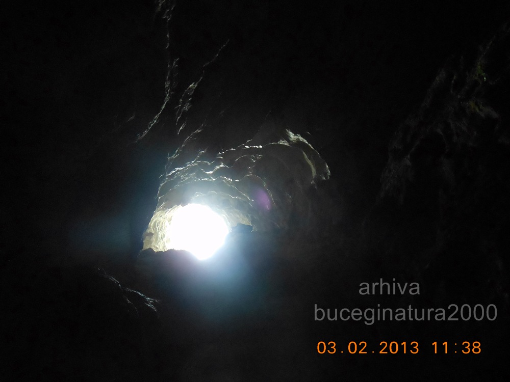 Mai facem niste poze, apoi iesim ca sa incepem sa urcam pana la un moment dat, de unde sa-i sunam pe ceilalti… In fata pesterii aud un zgomot. Ceva mergea in stanga dupa peretele stancos. Un alt zgomot mi-a atras privirea deasupra pesterii. Nu se vedea insa nimic. Ne departam de intrare, ajungem dupa cativa metri in poteca, inaintam putin si…