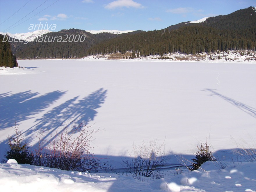E frumos lacul Bolboci îngheţat, un adevărat patinoar, natural, dar parcă mai frumos e vara, când se oglindesc în el toţi munţii din jur.