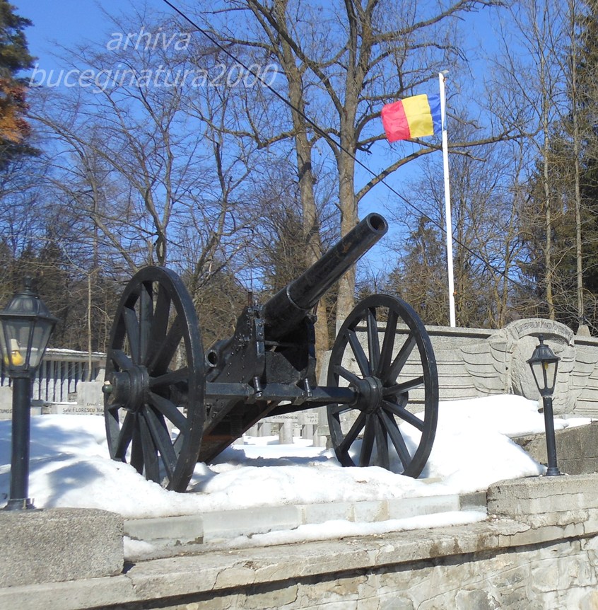 iar tunul din cimitirul militar din Sinaia (parca sunt doua tunuri la intrarea in cimitir sau nu mai stiu eu bine?) este capturat de la trupele otomane, in razboiul de independenta de la 1877. tot o captura de la otomani este si tunul din curtea Pelesului, de la intrarea catre „Economat”… capturate cu sange de catre ai nostri: soldatii romani, sub comanda Regelui Carol I. (suna cam patriotard, dar… acesta e adevarul). :-)