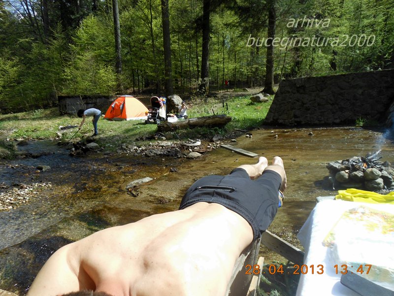 Cortul, caruciorul lui Rares, tot acolo era si un sac de dormit intins, sa stam pe el. Dar nu era mai bine ca pe banca. M-a prins si soarele, sa vedem daca ustura pielea maine. Pana la urma, daca ursul doarme langa prada, eu de ce sa nu dorm langa masa :))