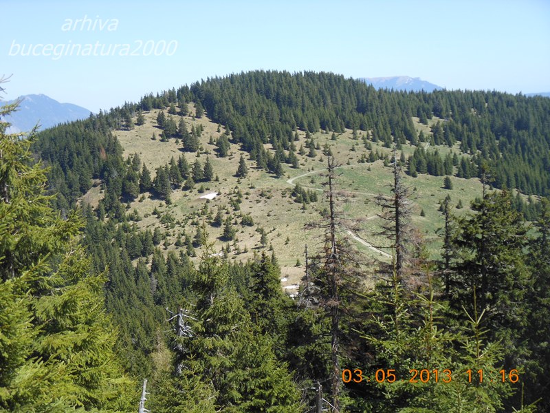 33Varful, de acolo am coborat. Mai aveam cateva minute pana in poiana indicata de sageata rosie