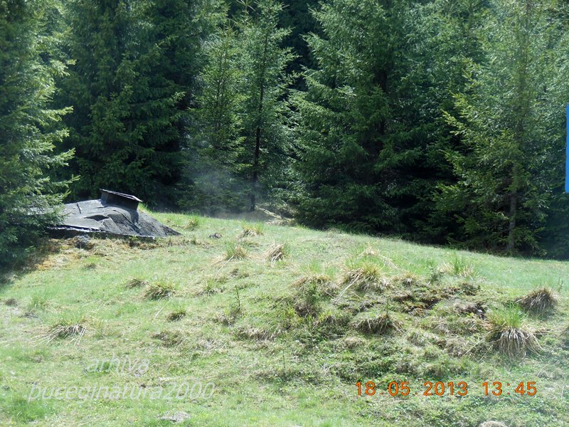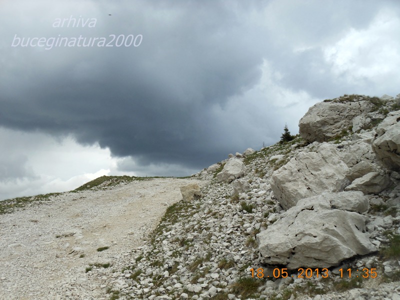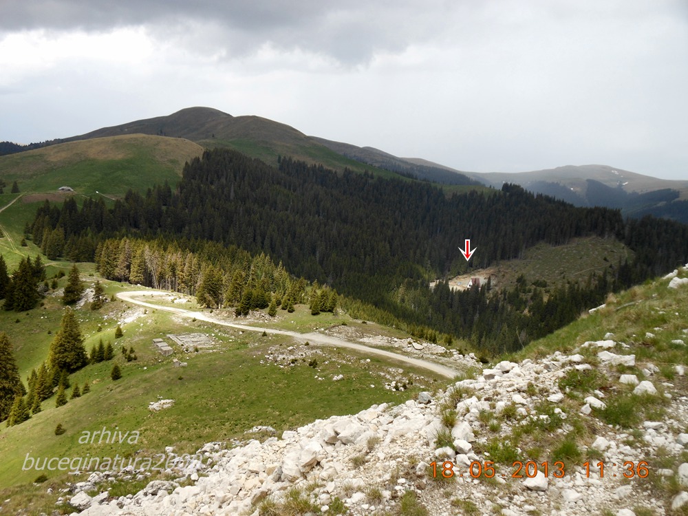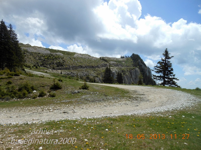 Acolo este locul unde doream sa ajungem. Este un platou excavat in muntele Podu cu Florile, pana acolo se urmeaza un drum forestier de circa 4,5 km. Pe circa 3,5 km se merge alaturi de marcajul cruce rosie, al traseului turistic Cabana Bolboci-Canton Bratei