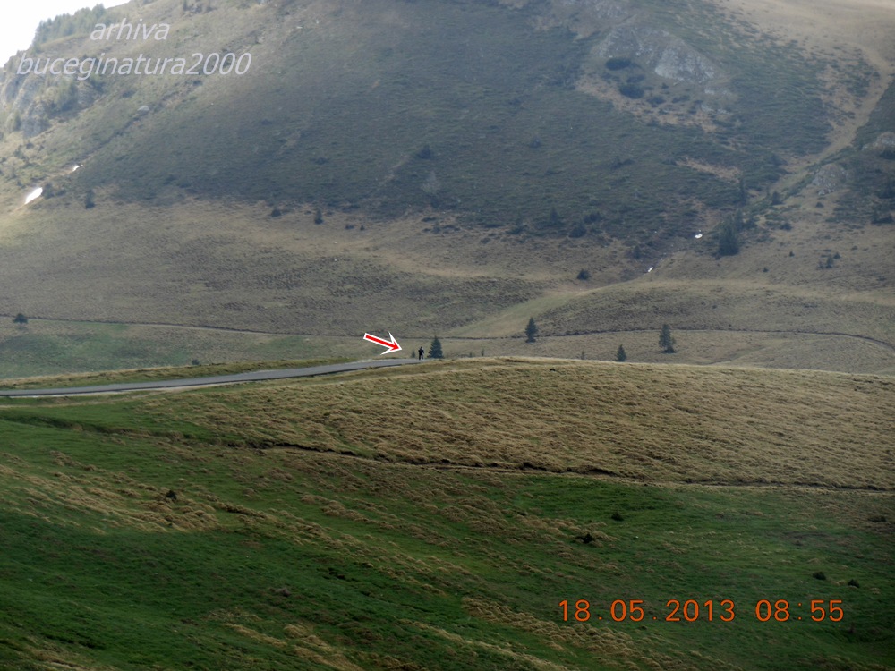Traversasem DJ 713 si eram pe traseul turistic marcat cu cruce galbena, ce coboara la Bolboci. Pe drum, o aparitie pitoreasca, un om singur, mergea, nimeni pe acolo, doar el…
