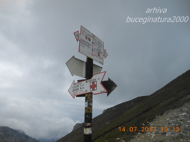 Aici este Curmatura Hornurilor, intersectie de trasee. De unde venim noi este poteca spre Vf. Omu, inainte traseele spre Bran prin Valea Ciubotea si muntele Clincea. In dreapta este Hornul Mare, si se coboara spre Malaiesti, in stanga, traseul spre Bran prin Valea Gaura.