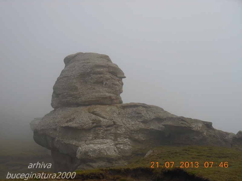 1. Traseul nu a avut dificultati, adica zone accidentate, cu atentie, se poate merge prin multe locuri. Trebuie insa sa vezi si altceva, nu doar drumul ori poteca turistica. Pentru ca multi asa merg pe munte, cu ochii doar la poteca sau la ceas, cand ajungem, cat mai este… Nici eu nu mi-am inchipuit ca intr-o zi pot cuprinde atatea lucruri, am avut si pe cineva asemenea mie, si am reusit sa vedem atatea. In acea zi, toate s-au potrivit incredibil de bine. Daca le-as povesti, nu ar fi de crezut :) Grota aceea este foarte ciudata, ochii parca au fost sapati, dintr-unul curge un mic, mic izvor, acoperit cu un verde aprins. Ca si cum aceasta cavitate cu chip, are in ochiul drept o lacrima verde. Atributele acestea mi-au intarit convingerea ca este acea grota despre care vorbeam cu ani in urma. Una mai potrivita ca aceasta nu cred ca ar fi. Multumesc si eu, multe mai sunt prin Bucegi de vazut…