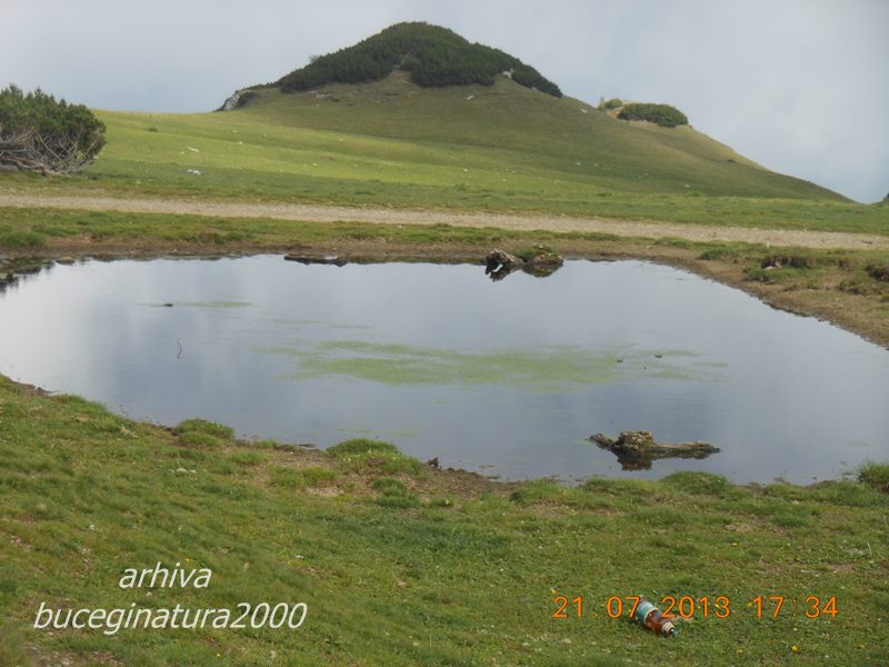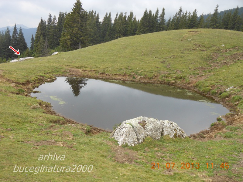 21Un lac langa Cheile Ursilor. Cu sageti rosii, locul unde aveam sa facem un popas. Nu stiam noi, de aici de sus, ca vom sta acolo…