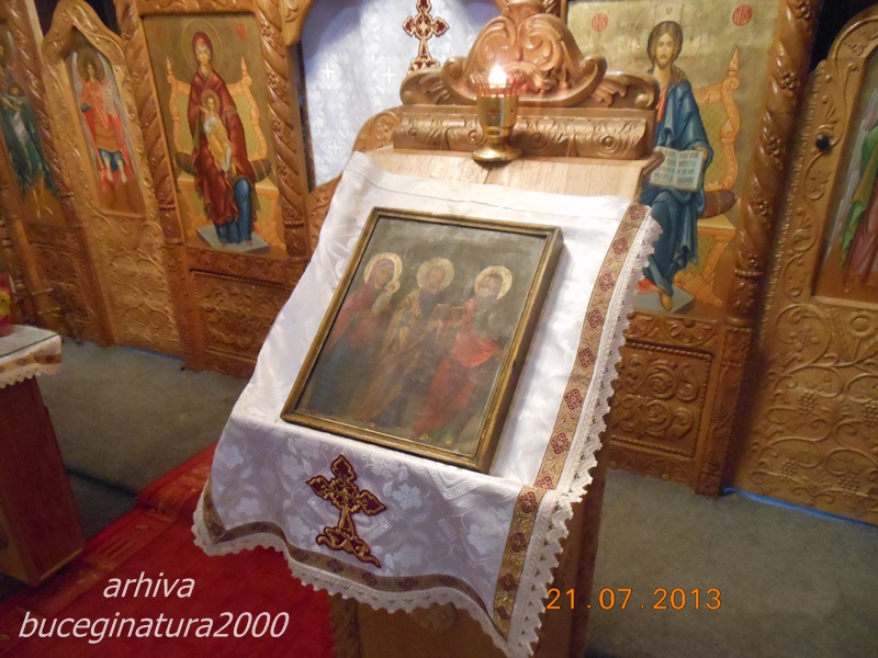 58O icoana foarte interesanta, ma refer la reprezentare: cei doi sfinti Petru si Pavel (hramul manastirii) si Maica Domnului cu Pruncul. Nu imi amintesc sa mai fi vazut aceasta alaturare pe undeva. Daca insa caut prin amintiri, s-ar putea sa fie vechea icoana de hram a manastirii, ce a stat mult timp in biserica veche.