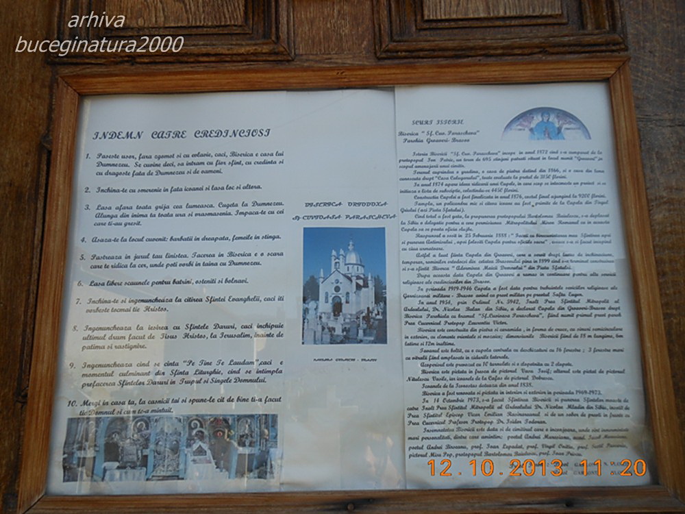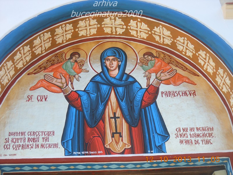 Casa cu icoana, reprezinta pe Sf.Ioan Botezatorul iar a 2 a Botezul Domnului.Maine o sa fim la hramul Sf. Cuvioase Parascheva,Va fi o mare slujba afara, iar lumea va sta printre morminte alaturi de cei plecati dincolo.Asadar nu or sa fie singuri!Aceste Sfinte Biserici,sunt cu o incarcatura spirituala deosebita,nu pot sa ma exprim ,deoarece totul a fost explicat de tine!Cimitirele sunt obligatoriu ingrijite de detinatori,pt. ca asa ni se cere de catre preoti,altceva nemaiputand face pt. cei dragi ai nostri,plecati in lumea de dincolo.Sa stii, ca e o mare bucurie pt.noi, faptul ca te-ai atasat si faci cunoscute pt. toti orasul nostru.Casele acelea vechi neangrijite ,reprezinta mostenirea retrocedata cred eu,cu un mare semn de intrebare!Avem prieteni aruncati afara din asa zisele mosteniri…Ai fost astazi cu bicicleta pe drumul dinspre Racadau spre Poiana?