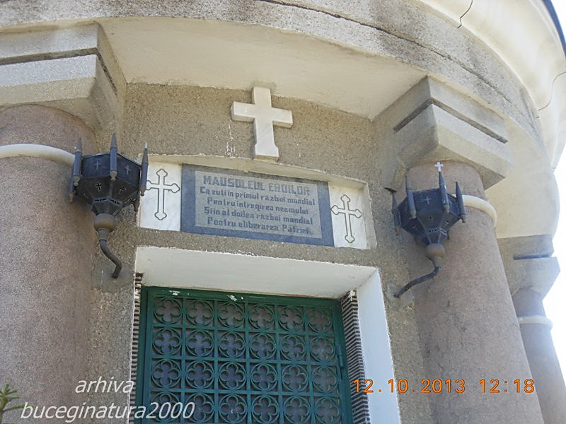 45Mausoleul Eroilor…daca priviti pasarea de deasupra, seamana foarte mult cu pasarea de pe capela-osuar de pe muntele Diham, din curtea vanatorilor de munte. Constructia de la Dihamul militar este in padure, arata insa foarte urat, degradata…