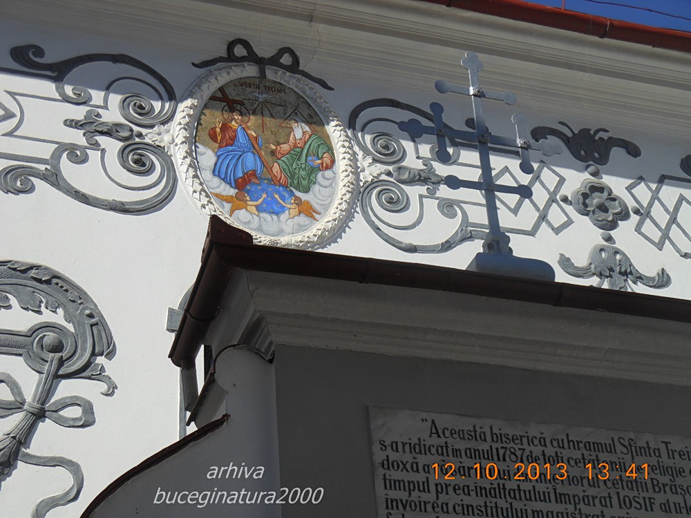 Apoi am ajuns si la o alta biserica „Sf. Treime”. Biserica este intr-o curte, de fapt ortodoxismul in Brasov nu prea a fost lasat sa se extinda, astfel ca au aparut tot felul de biserici ascunse. Din drum, nu vezi ca este o biserica, intri pe un fel de gang, o sa vedeti…