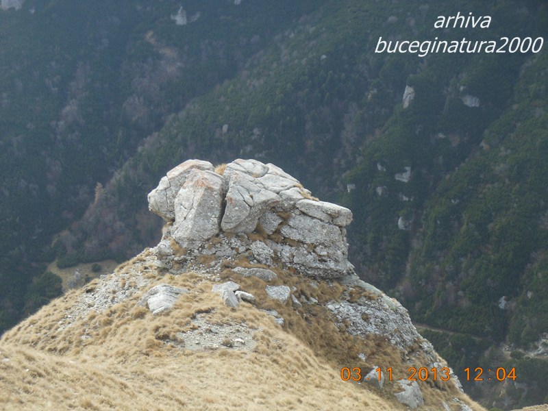 32Pe acolo este traseul Pestera-Omu. Niste prieteni au pe site-ul lor o poza veche cu un bolovan pe langa care trece poteca. Insa in prezent acel bolovan urias, suspendat, nu se mai regaseste, a cazut in vale. Eu cred ca era la baza acelei stanci si ca acum este printre jnepeni. De vreun an am in minte si chestia asta, voi merge cand am sa mai trec pe acel traseu sa ma uit de acel bolovan impresionant ce odinioara statea suspendat, sa lamurim si aceasta chestie :)